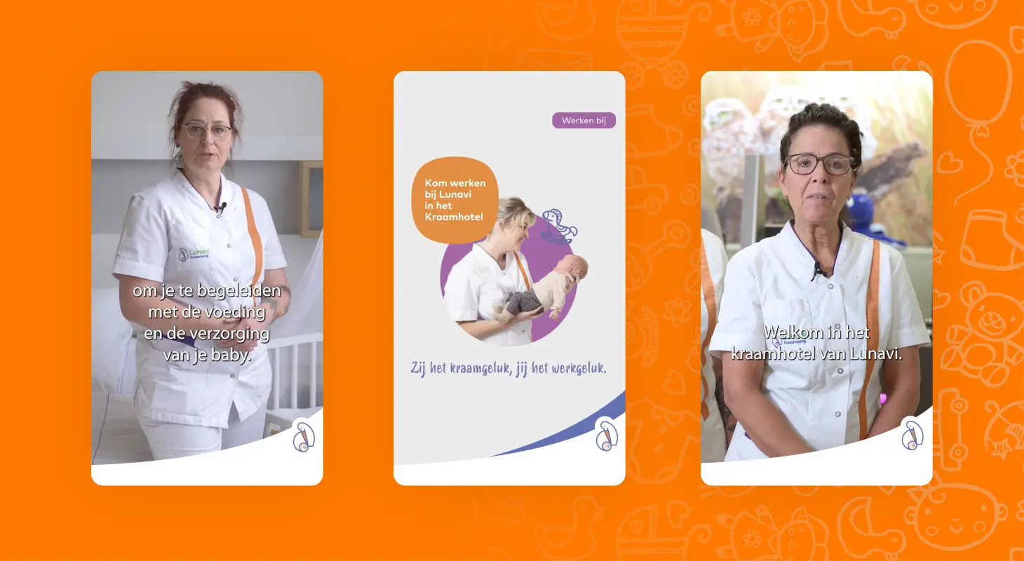 Van bevallingsverhalen tot medewerkersinterviews: samen met Lunavi en Dé Provinciale Kraamzorg brengen we de mooiste en meest persoonlijke verhalen tot leven. Wat begon met een serie kraamverhalen, groeide al snel uit tot een structurele samenwerking waarbij ook medewerkers worden geportretteerd. En met resultaat: de content raakt, inspireert en presteert als beste op social media.