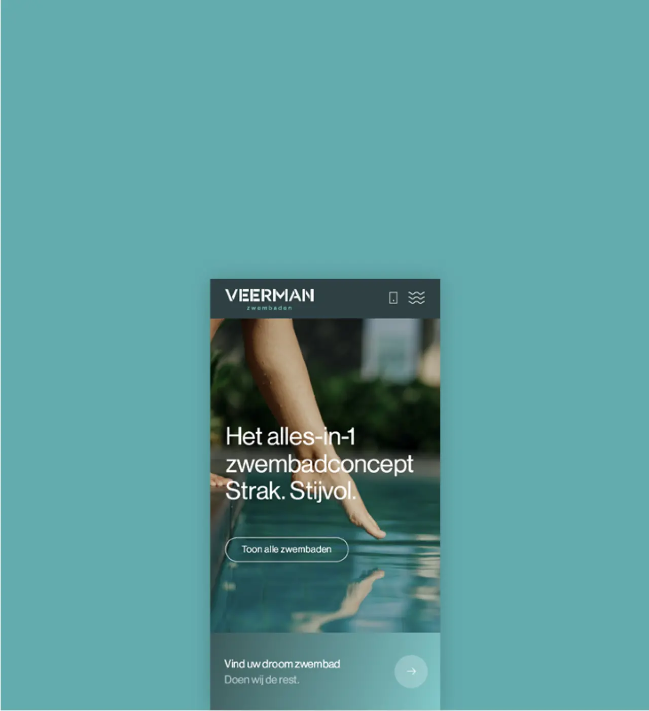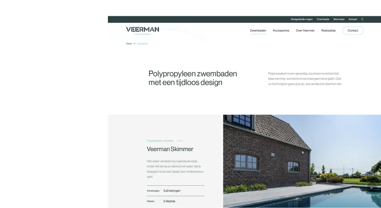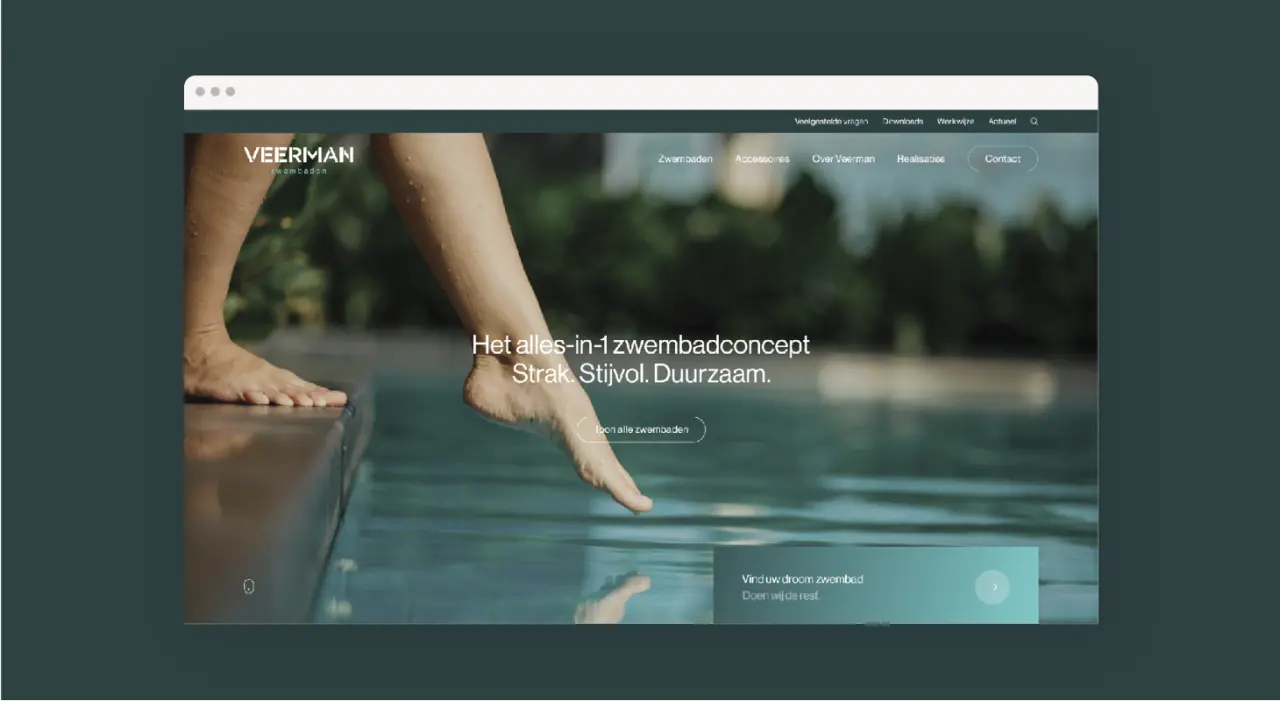Veerman Zwembaden stond voor de uitdaging om zich te onderscheiden in een zeer competitieve markt. Ze zochten naar een sterke identiteit die hun unieke visie en vakmanschap weerspiegelde, opvallend gepositioneerd tegenover de concurrentie.
